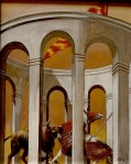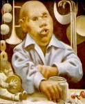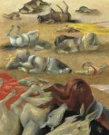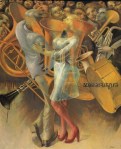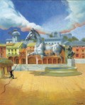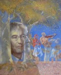 Sus obra crecen en tamaño a la vez que se representa el mundo que le horroriza y a sus habitantes, es una visión del mundo como espectáculo y una crítica irónica al mismo expresado con realismo social. La influencia de la luz y el color le hicieron desembocar en el realismo mágico.